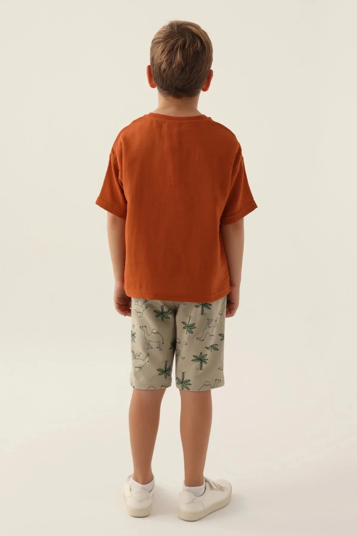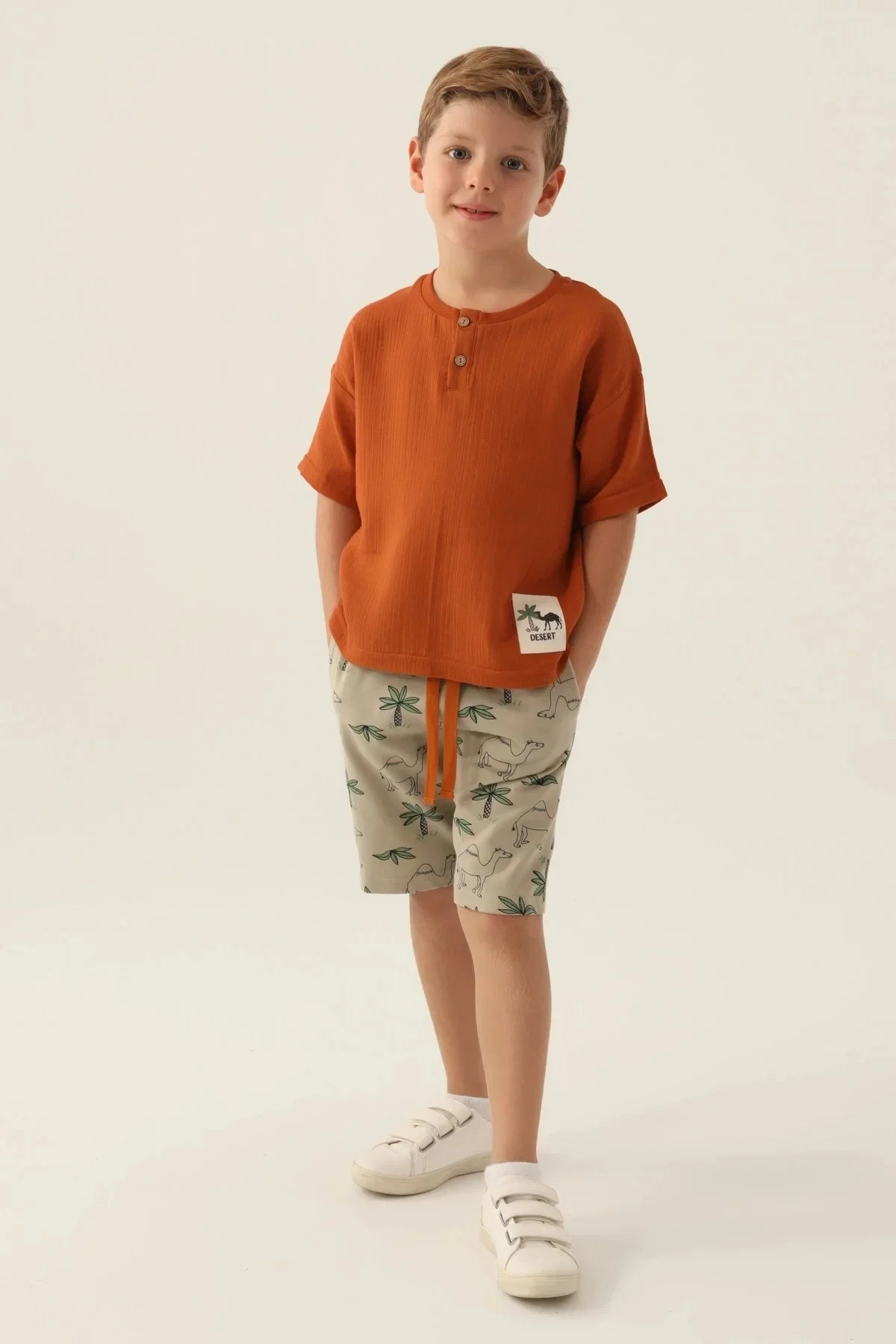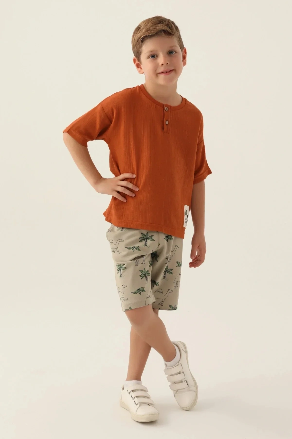 Oğlunuz bu şık Bermuda takımı giydiğinde tüm bakışları üzerine çekecek. Arkadaşlarıyla parka giderken ya da ailecek keyifli bir pikniğe çıkarken, rahat ve şık bir görünümle kendini özel hissedecek. Yumuşacık kumaşı sayesinde gün boyu konforu yaşarken, modern kesimiyle de kusursuz bir tarz sergileyecek.
