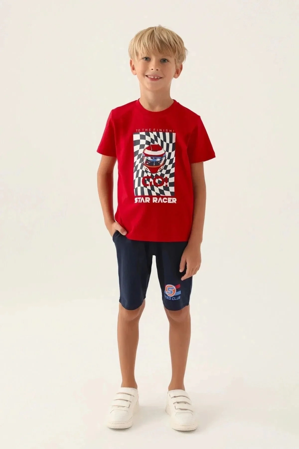 Bu şık Bermuda takımı, spor ayakkabılar ve hafif bir tişört ile mükemmel bir yaz kombini oluşturacak. Ayrıca, bir şapka ile çocuğunuzun stilini tamamlayabilirsiniz.