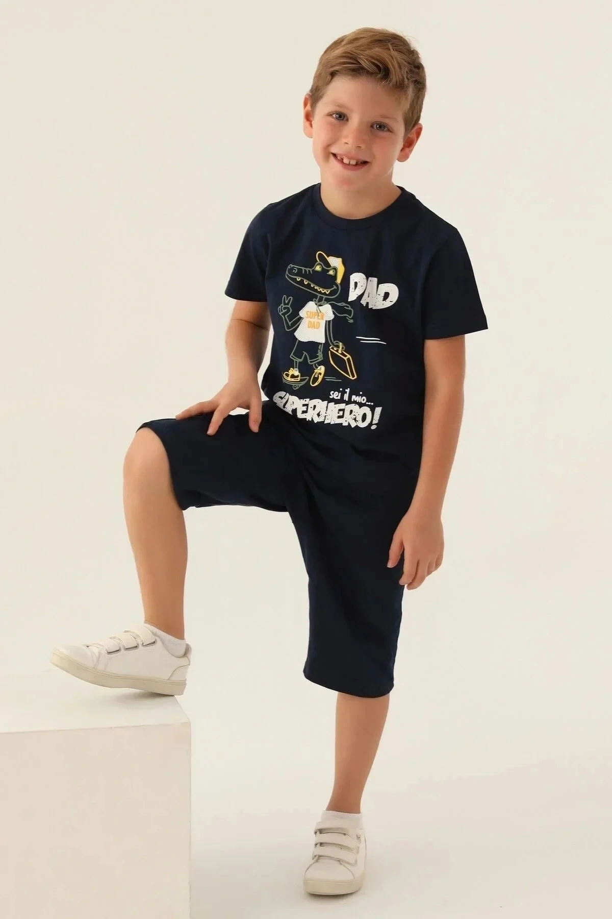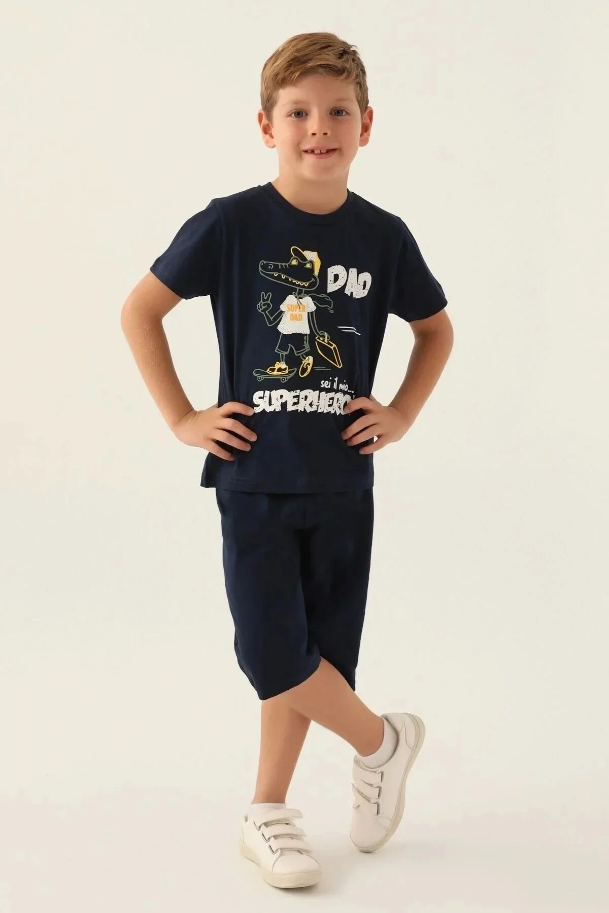 Çocuklarınız bu şık kapri takım ile kendilerini özel hissedecek! Yazın enerjisini yansıtan tasarımı ile parka giderken ya da arkadaşlarıyla buluşurken tüm bakışları üzerinize çekecek. Yumuşacık kumaşı sayesinde gün boyu konforu yaşayacaklar, modern kesimi ile de mükemmel bir görünüm elde edecekler.